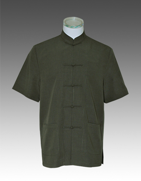描述:豆綠色短袖(一字盤扣)