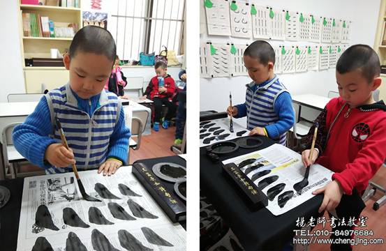 我們在水寫帛上書寫得不亦樂乎,手臂力量也在慢慢增長,原來不聽話的毛筆現在和我成為好朋友了,請您看看我這個「瓜子點」是不是也很棒?。?/p>