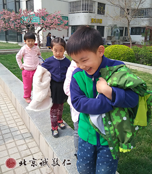 老師及時表揚了琪琪:「很好,繼續(xù)努力!」琪琪一聽可高興了,上上下下練習個不停,中間偶爾有想習慣性地用手幫忙,但很快,隨著上下的次數(shù)增多,掌握了不用手幫助而讓身體平衡,很輕松自然地上下小圍墻啦。