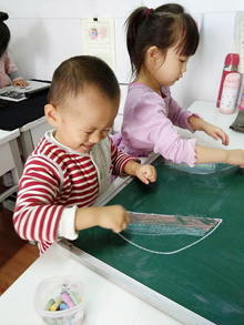 陪同孩子一整天的學習,讓我感受到:環境好,實在是因為老師好!小星星三歲多,生活自理能力還不夠,吃飯、午睡、上廁所、增減衣服等都要人照顧。而這里的幾位老師非常細心、耐心,不僅照料小朋友的這些生活細節,而且手把手地教他自己學著做。以前星星在家,像吃飯、穿衣、上廁所這些事一定要大人幫忙才行,真的是「衣來伸手,飯來張口」。到了書法教室,沒多久就能夠也很樂意自己去做了。雖然是這么細小的事情,但卻是他人生真正的初學處。老師的耐心付出,讓星星消了一分驕奢氣,也讓我們父母老人輕松了不少。
