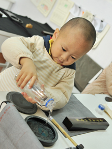 正在為如何管教孩子發愁的時候,想起了亞運村的楊老師書法教室,于是把這個頑皮不受教的小男孩送到了這里。