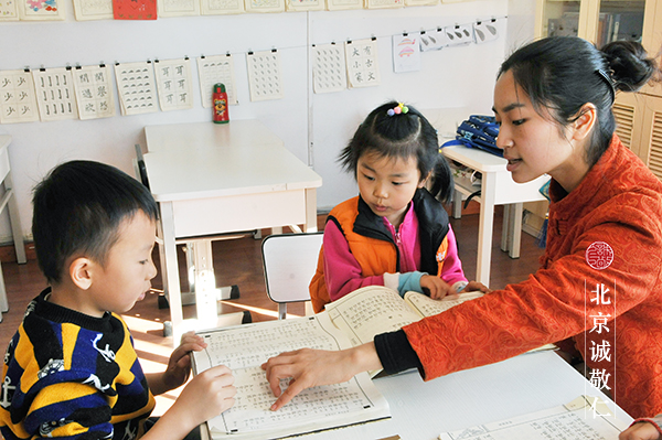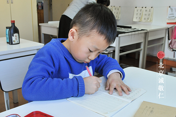 我不解,一天下來,孩子要完成那么多學(xué)習(xí)任務(wù),老師是怎么帶他們的?遇到不按要求做或者拖拖拉拉做的孩子時,老師們難道不發(fā)火,心里不煩躁嗎?原先的幼兒園有各種活動,吃喝玩樂嘛,小孩子喜歡很正?!,F(xiàn)在全天來書法教室了,來到一個有更多要求的環(huán)境里,在我想象中,古板的老師,繁瑣的禮節(jié),嚴(yán)格的書寫,貪玩的小孩,你能受得了嗎?在這樣一種近乎傳說的學(xué)習(xí)古圣先賢思想的德藝雙馨教學(xué)模式下,培養(yǎng)出的孩子,真能與今天的社會相適應(yīng)嗎?在我們都忘記了見面鞠躬行禮的今天,重新學(xué)習(xí)問候禮節(jié)還有那么必須嗎?我偷偷地觀察著、感受著這里的一切。