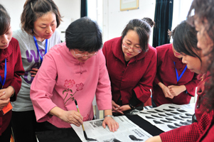 最后一天,楊淑芬老師的定心描紅課和字體結(jié)構(gòu)課,令未來的書法老師們更是如獲至寶,對中華傳統(tǒng)藝術(shù)的活學(xué)活用亦有了更深刻的體會。此次書法培訓(xùn)也在大家幸福的笑臉中,圓滿地劃上了句號。