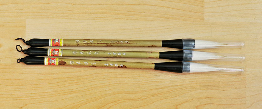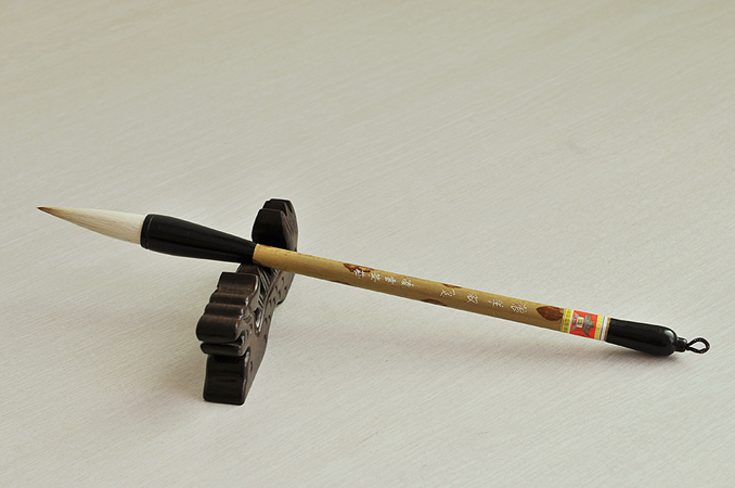 毛筆產自「中國筆都」浙江湖州,湖筆歷來以「尖、齊、圓、健」著稱,質量優良,圓潤飽滿,我們精挑細選出大家現在看到的產品。該筆為羊狼兼毫,剛柔適中,且柔軟有彈性,筆鋒尖銳,筆桿圓正光滑,揮灑自如,長久耐用。