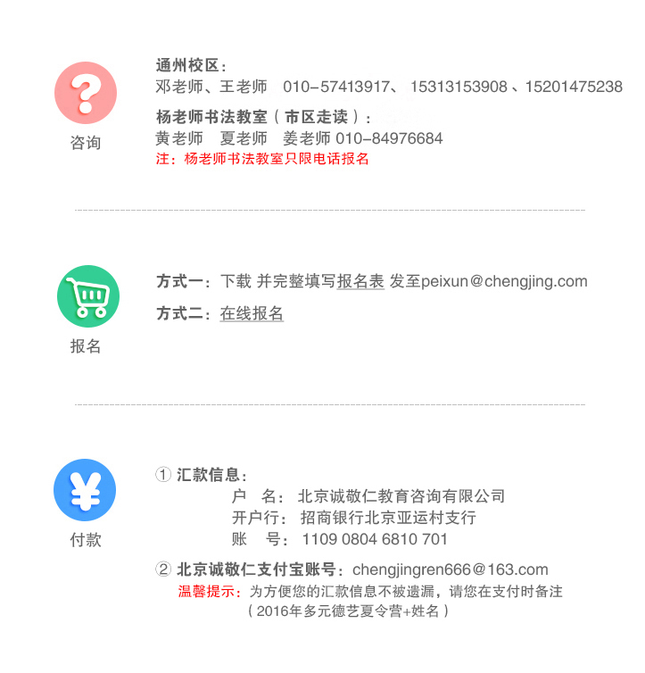本著傳統書法藝術教學因材施教的原則,指導老師會根據每位學員的學習程度量身制定合適的學習進度,并分別進行指導,幫助每位學員完成其學習目標。因此大家可根據各自放暑假的時間,安排前往北京誠敬仁學習書法的日期。