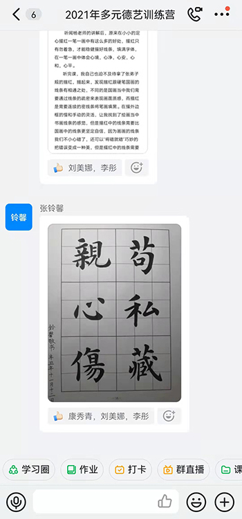楊淑芬老師親自任班主任,集40余年的傳統文化教學及書法教學傾囊奉獻;