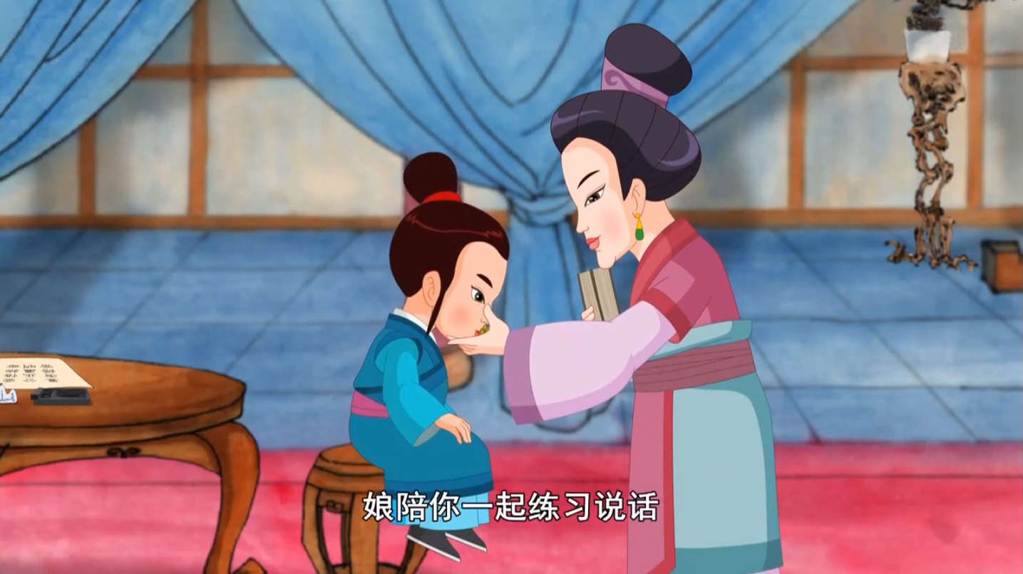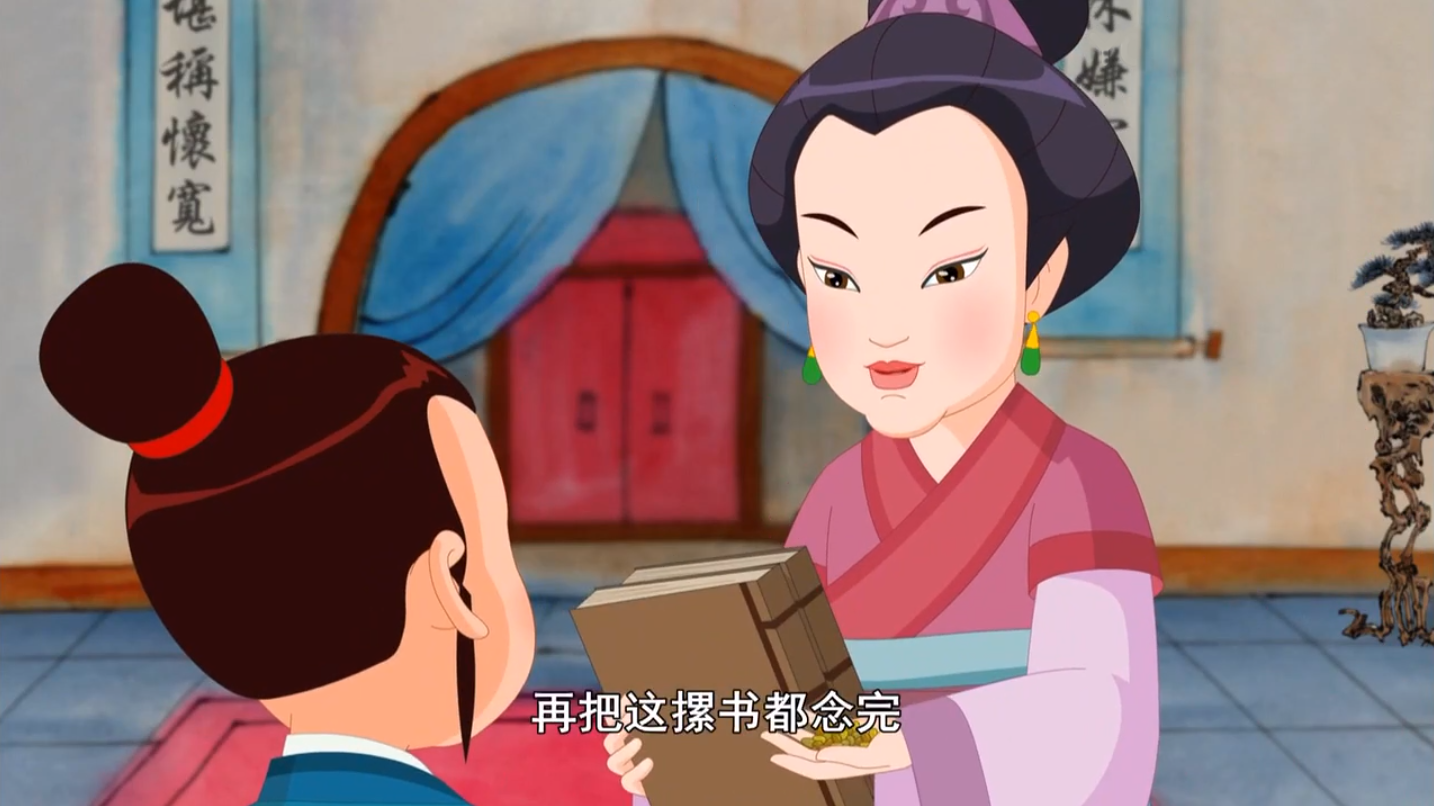 ▲《吳謝笞賀》中 吳母帶兒子小賀