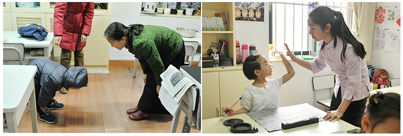 在這里學習,孩子收獲的不單單是軟筆書法技能的學習,更多的是接受了做人的扎根教育、養成專注、禮貌待人等好習慣,如老師教孩子怎么洗碗、疊衣服、怎么正確的走路、怎么吃飯、灑掃等等,老師們教導的耐心勝過父母在家對孩子的耐心,一點一滴無時無刻不在傳遞著對孩子的愛。