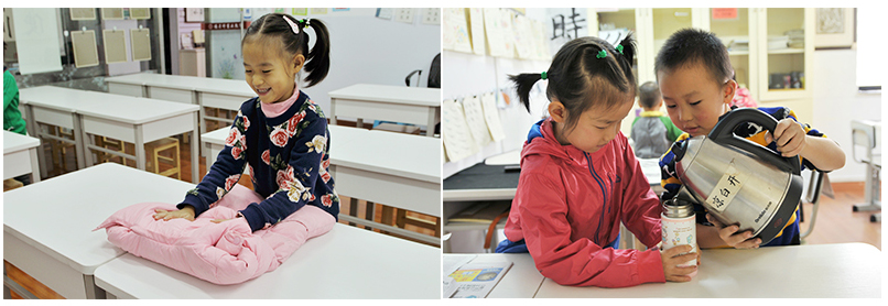 學習自主地吃飯、整理小衣服、擦桌掃地,學習洗漱、洗小衣服,課堂禮儀、書桌整理,培養孩子的一些好習慣。 |