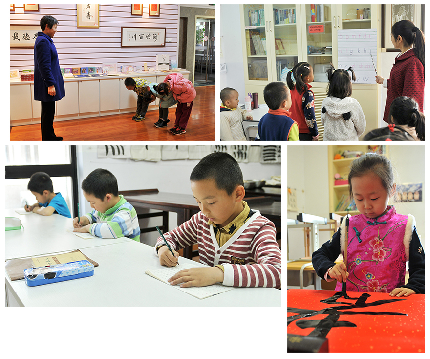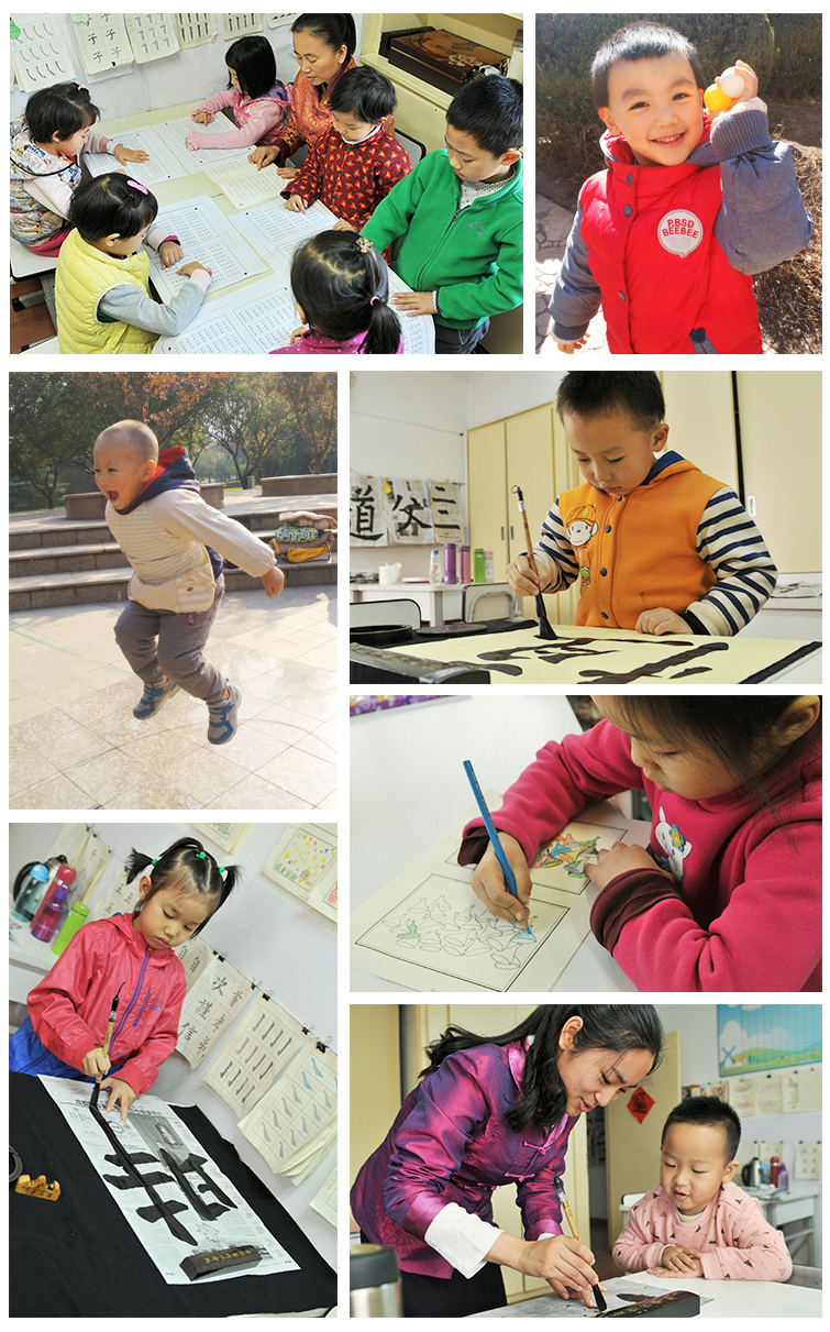 看德育動漫,讀《三字經》,從小接觸中國文化,就連中午的游戲活動,老師們都把謙讓友愛植入其中,在她幼小的心里種下愛的種子。書法教室像世外桃源,老師們更是在用心教育下一代。看到老師們的好樣子,真正感受到孩子是有福氣的!