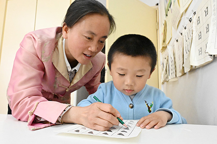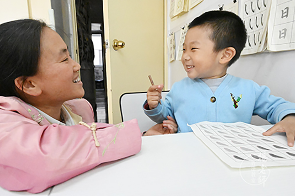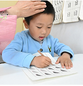 剛來書法教室時,呈現(xiàn)的是天真懵懂,滿眼好奇,注意力不集中,難得聽進老師的話,處理問題以摔打哭鬧跳跑為先,配之以高音量及不耐煩。面對這樣一個比較有特點的小寶貝,老師們以誠摯的愛心,無比的耐心,在日常教學中導之以禮,齊之以規(guī)矩,手把手帶,一句一句教,他漸漸學會做力所能及的事,禮貌講話,認真學習,友善處理人際關(guān)系。這個雖調(diào)皮但萌萌噠的小寶貝,一點一滴地接受了老師如雨潤春苗的滋養(yǎng),漸漸養(yǎng)成了好好說話、規(guī)規(guī)矩矩做事、認認真真學習的好習慣。