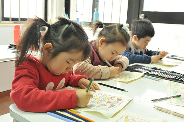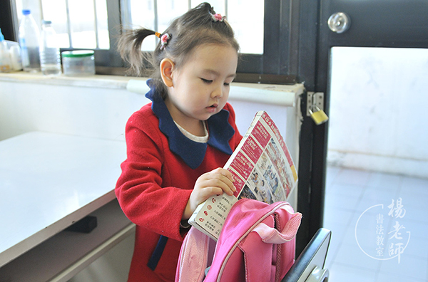 女兒天生膽小,愛哭,又怕生人。從小家里一來客人就哭,一直到客人離去,很是尷尬。所以到陌生的環(huán)境里接觸陌生的人,是她人生的第一課。到書法教室后,接連哭了近一個多月。老師們很有涵養(yǎng)和智慧,女兒的哭鬧,并沒有得到應(yīng)有的關(guān)注。周老師巧妙地利用“爬樓梯”讓她明白了哭鬧的情緒是無法解決問題的,面對困難要學(xué)會堅持。