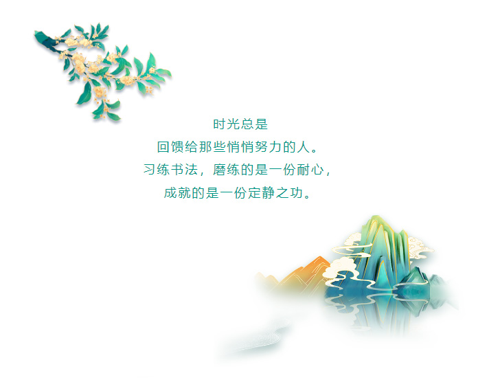 在「楊老師書法教室」學習的同學們,既有剛開始啟蒙學習的幼兒,也有步入學校學習的小學生、中學生,還有已參加工作的成人,已退休的長者。大家在這里感受傳統文化藝術氛圍的熏陶,體味身心境界不斷提升的喜悅與快樂。