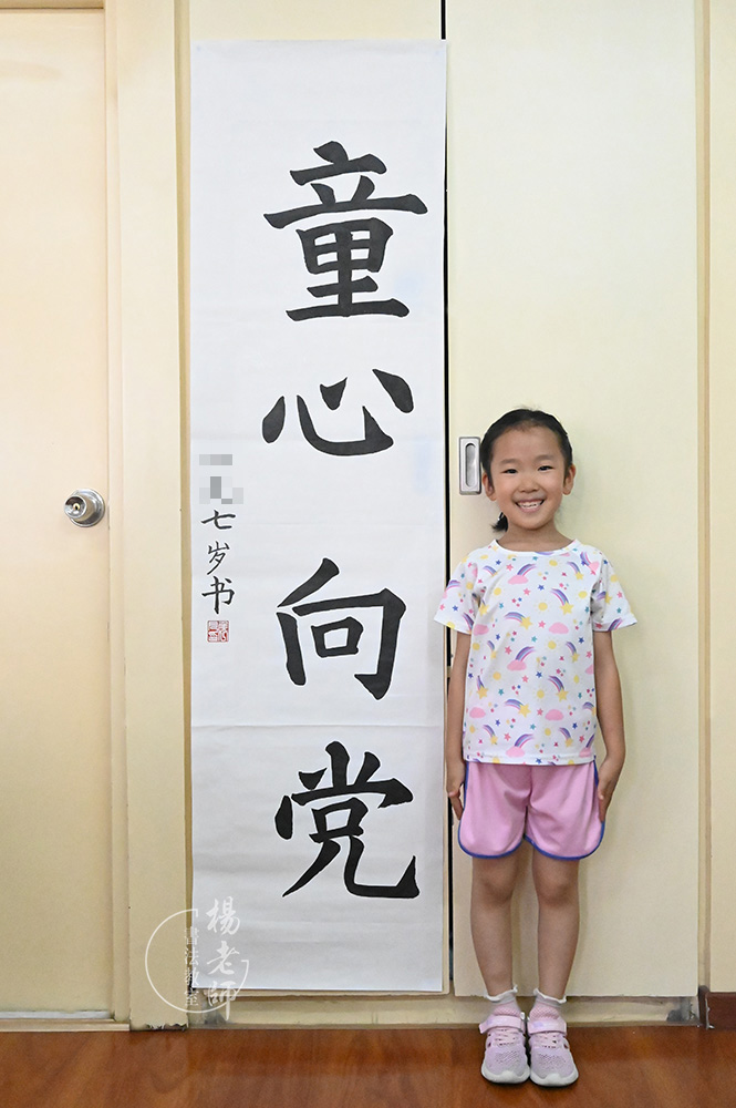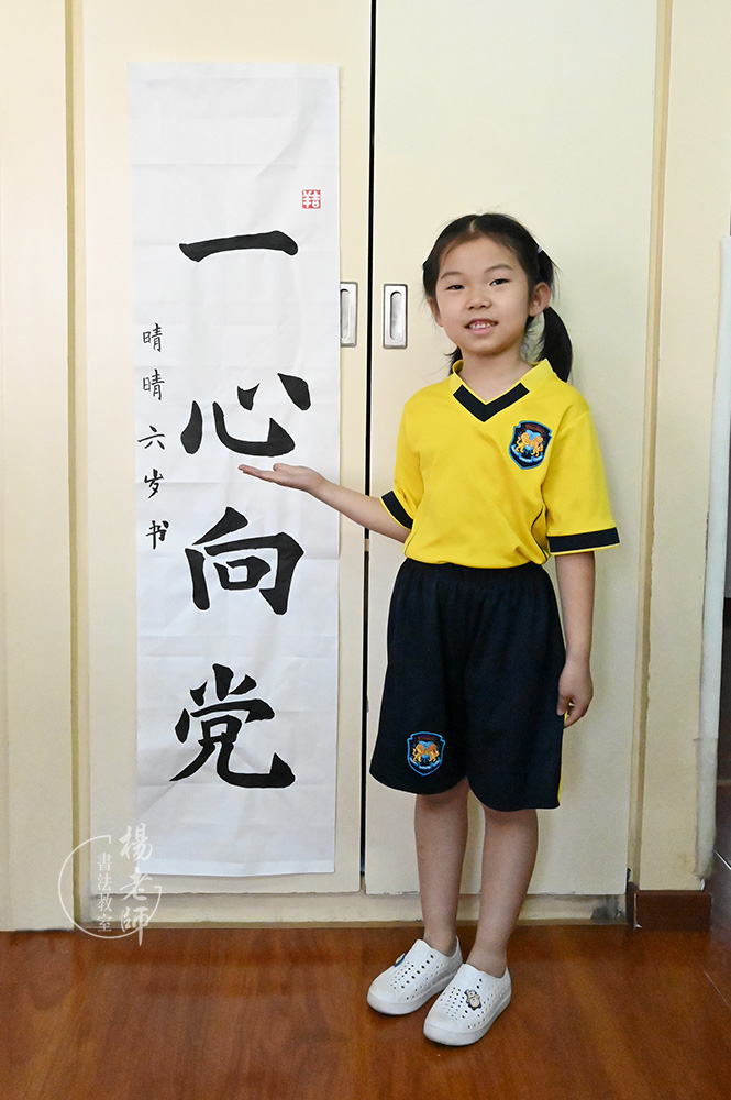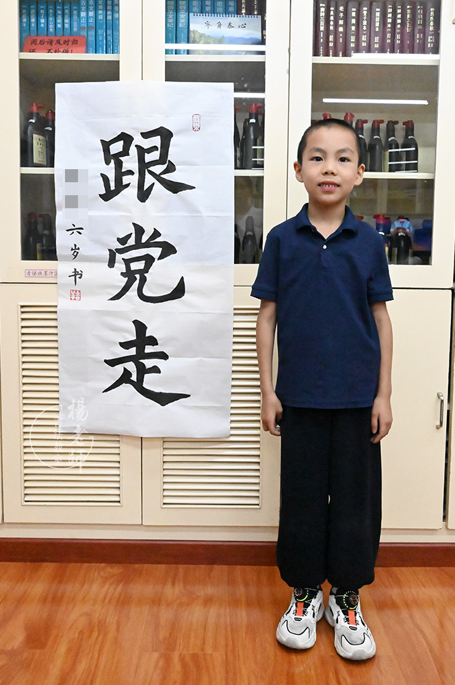 | 以上四位同學均在三歲半左右就來到「楊老師書法教室」孝悌班學習。在「七分德 三分藝」的教學理念指導下,他們在這里接受了非常全面的德藝學習。不僅能寫得一手好字,更在心中深深扎下感恩與愛的種子。在建黨一百周年之際,他們寫了多幅敬黨愛黨的作品,以表達“請黨放心,強國有我”的豪情壯志。