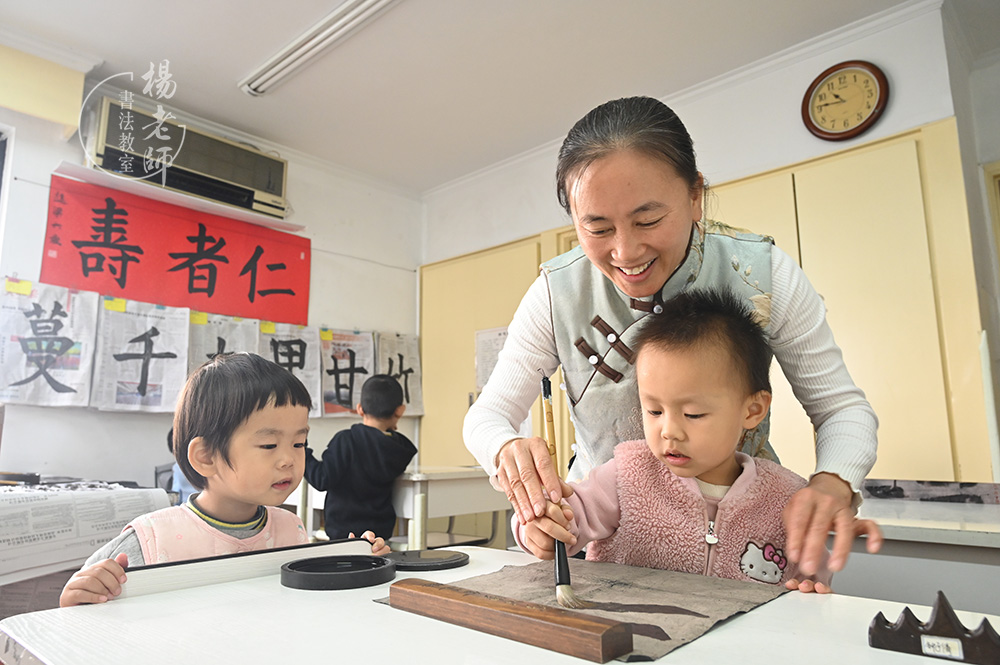 豆豆在書法教室,做起了小學姐、小助教。 |