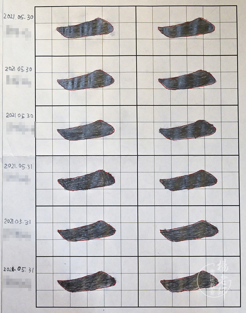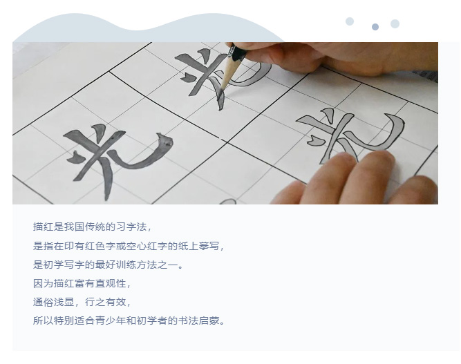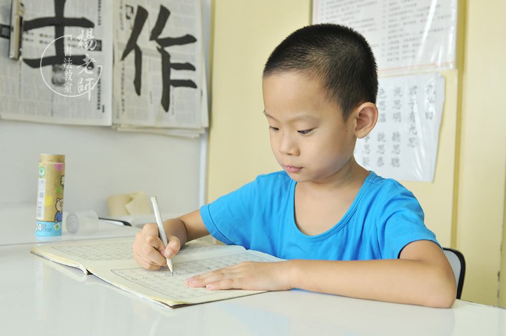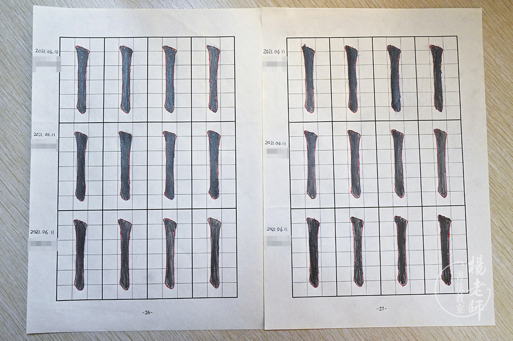 「楊老師書法教室」德藝素質班,尤為注重兒童習字的基礎描紅練習。在教學實踐中,發現描紅不僅能打下寫字的基礎,更是培養身心定靜力量的源泉。而且,所受益者并不止于兒童自己,也延伸到他們的家人。