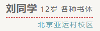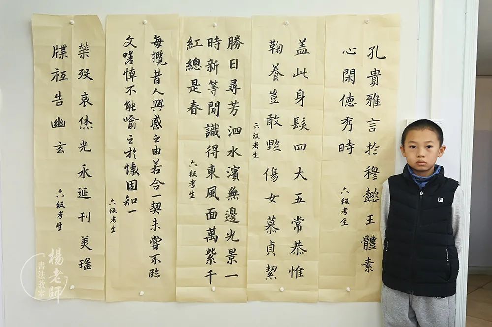 劉同學從四歲進入「楊老師書法教室」學習,一路的成長有其清晰的腳步?,F在,他滿懷自信地進行著考級準備,讓我們預祝他能取得好成績!