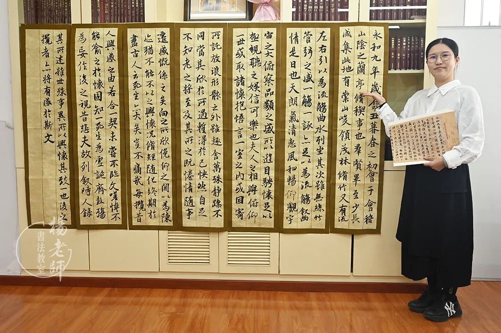 金女士學習非常勤奮,短短兩年時間便掌握了楷、行、隸等書體。這是她準備的考級練習作業《蘭亭序》,讓我們也預祝金老師能取得佳績!