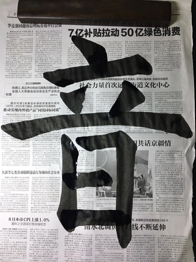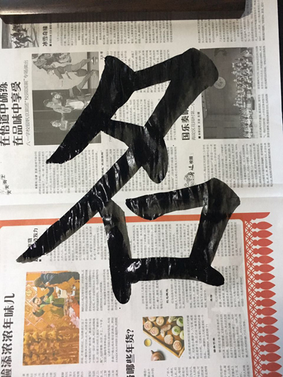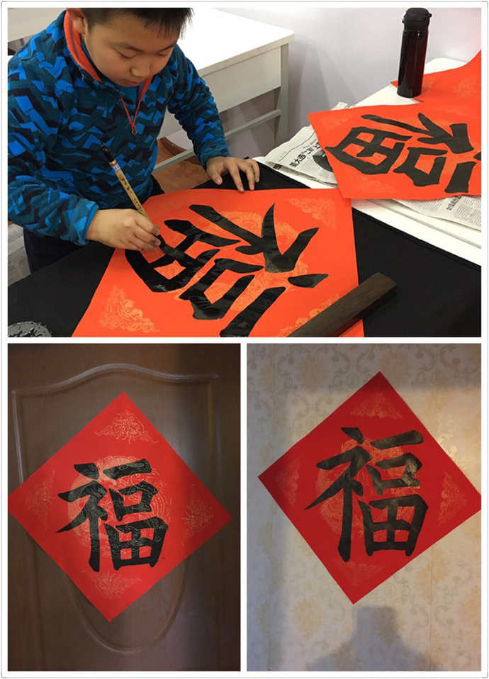 雖然年前集訓很緊張,但果果依然沒有食言,每天都抽空寫「福」字送給家人、老師,更不忘經常贊助他報紙的鄰居爺爺奶奶。