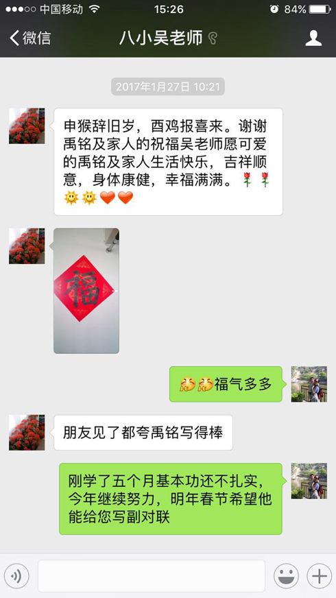 不能參加冬令營,寒假依然要過的充實,那我們就必須要做出計劃,勞逸結合才能讓小朋友欣然接受。練大字當然是計劃中必不可少的一項,放假前拜托鄭老師給假期留了范字,因為白天有集訓,只能晚上練字,說心里話,孩子一天高度緊張的訓練,晚上再寫字心里肯定不會很情愿,那這個「壞人」就只能媽媽來做了。每天下班到家第一件事就是把筆幫他泡上,這樣吃完飯自然而然就要練字了,慢慢的他竟也養成習慣了。記得考級后我帶他到公司,同事問他你媽媽每天給你留的作業你愿意寫嗎?果果說不愿意也得寫呀,我都已經習慣了。「習慣」聽起來沒什么,但是真要做到也不容易。