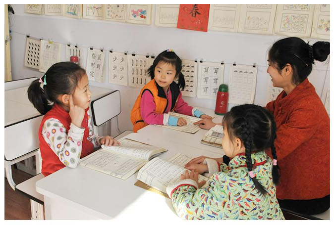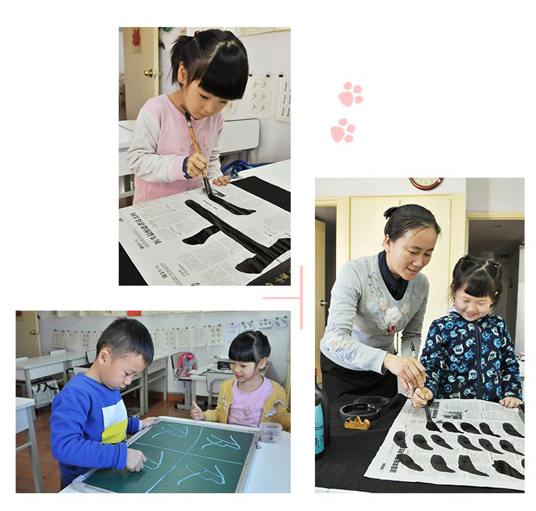 每天一早,來到書法教室的第一節課就是晨讀。孩子們的識字量從這里得到了充實。在語言表達上,也會將經典運用其中。對事物的正確辨別能力和獨立思考能力也有效提高。
