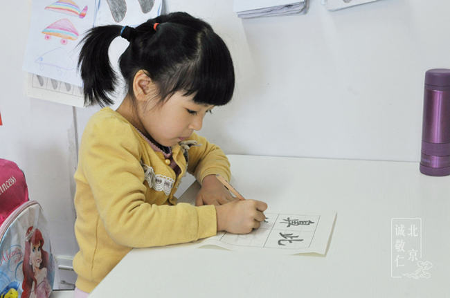 我們是抱著將信將疑的想法讓驊兒開始在書法教室學習。最開始一周,驊兒總是嚷著不要去書法教室,我想可能是雙語幼兒園的寬松環境讓她比較難適應書法教室的「嚴格要求」。