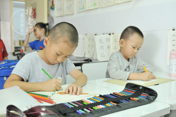 一天晚飯后,小星星自己坐到桌前開始描紅。一會兒,奶奶過來陪他,于是一邊描,小嘴巴一邊開始說:「奶奶您看,先勾個邊框,邊框就好比是國界,不可以出國界;然后再描里面,一筆一筆描,要拉的直直的,不能毛毛刺刺的……然后里面要是有小的白白的,你就再給它補補……這里不能出來了,出來就好比成了一個大大的肚子……」書法教室的小學生,回家儼然成了個小老師,說的奶奶樂得合不攏嘴。
