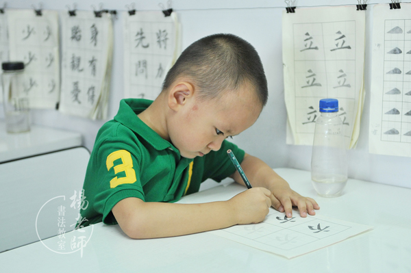 小星星剛開始是描筆畫,現在慢慢進階到描字,并且他也特別喜歡描字??墒堑谝槐净竟P畫還沒描完,媽媽有時不同意他描字。小家伙想想說:「我想了個辦法,那我就先描兩張筆畫,然后您就獎勵我描一張字吧!」看著孩子那么純真、熱切,愛妥協的媽媽又同意了。開始描字的小星星很興奮,勾好一個字的邊框后,把描紅紙拿到媽媽面前:「媽媽,您幫我寫1、2、3?!埂甘裁矗繉懯裁?、2、3?」「就是,就是,第1描哪個,第2描哪個?!箣寢屵@才明白,原來是筆畫順序呀,一定是書法教室老師教給他的。媽媽這么粗心,原來小朋友學寫字,就是從第一筆寫什么、第二筆寫什么學起的呀。在這兒,特別感恩楊老師書法教室的老師們,教給孩子們讀書、認字、寫字,給一顆顆小小的心田里播下了愛中國字、愛傳統文化的種子。
