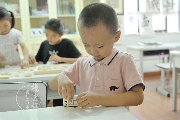 所幸的是,書法教室老師們引導的好,雖然小星星經常「侵犯」同學們,但別的小朋友都很寬容、有禮、有量,都沒有跟小星星計較。特別是進梁學長,也非常包容小星星,于是小星星成了進梁學長的小跟班,每天放學后都要求兩個人在樓下玩一會兒才回家。有幾天,學長回老家沒有來,小星星每天都問:「明天學長來上學嗎?學長什么時候回來呀?」一天,老師拿出拼字的積木給大家玩,小星星看到一個「辶」,馬上想到,「咱們拼一個進梁學長的『進』吧!」可是,「進」字怎么寫呀?試了幾個,不太對;當他終于找到「井」字,放到「辶」里的時候,滿臉的喜悅簡直是無以復加了。