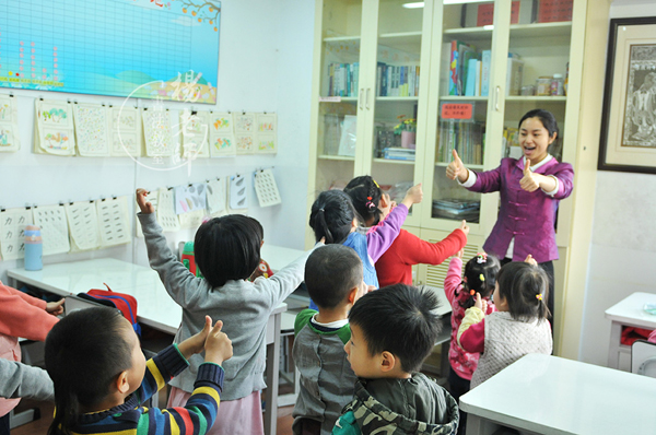 在家散漫慣了的孩子,進入課堂很難將心放在學習上,經常會出現抱怨或不喜歡學習,吵鬧著要回家的學生。這時,那些掛在墻上的作品就成為了榜樣,老師會指著那些字問: