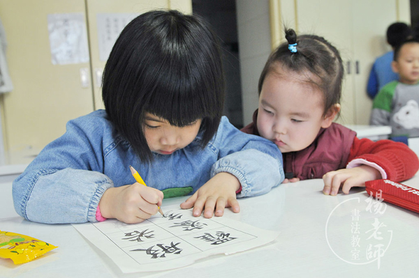 孩子每天來到書法教室會集中學習包括描紅等諸多科目,在這里會有老師悉心的指導,同學的相觀而善,所以進步的速度是相當快速的。但若要更好地將這一學習氛圍延續下去,更多的是需要家長的配合,孩子回到家里也能每天堅持20—30分鐘的描紅,建立良好的學習習慣以后,對于未來課業,也將自然而然以這樣的學習狀態延續。