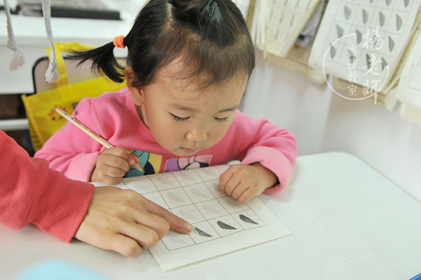「楊老師書法教室」的描紅是從永字八法基本筆畫開始學習,筆畫的走勢不同,決定了線條的走向,孩子經過長期練習,不但小手逐漸有了力量,慢慢對線條也有了控制能力。