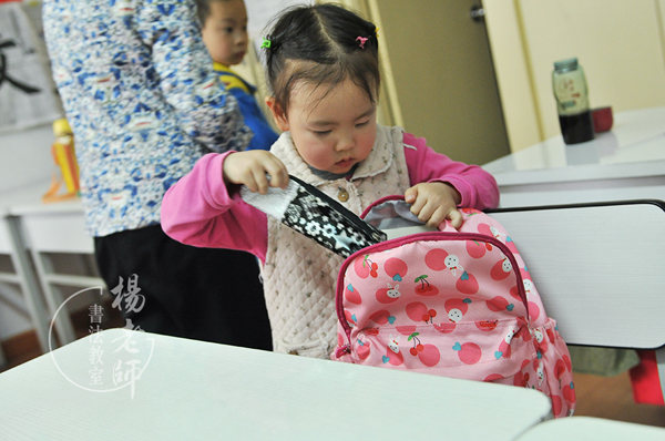 沒來書法教室前的慧慧,雖然愿意自己做事,但條理性很差。比如在家脫衣服,她會自己疊一疊,但很不認(rèn)真,窩成一個(gè)疙瘩是常有的事。襪子總是“分家”,不是找不到玩具就是找不到經(jīng)書。你一問她,她會很不耐煩地說不知道。到書法教室才幾個(gè)月的時(shí)間,不僅能整理衣服,還會收拾自己的書包。就連「讀看畢,還原處」也做得很好。現(xiàn)在如果我的衣服沒疊整齊,她會義正言辭地說:“媽媽,明天衣服寶寶不和你做好朋友了。”我欣然接受了。