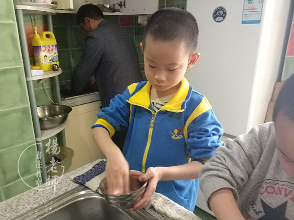 以前在家爺爺帶他,出門還得抱著,衣來伸手,飯來張口。出門從來不拿自己的書包和水壺,拒絕自己拿。來到書法教室,在老師的引導下,放學回家肚子餓了知道自己沖碗芝麻糊,還主動刷自己的碗。我做米飯時,看我洗米,也能幫助我。現在早上起來穿衣,洗漱都是自己完成。每天上學自己背書包,拎飯盒。外出時,也能幫助我拿一些輕的東西,給我幫忙。如廁畢也會自己清潔了。