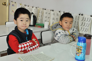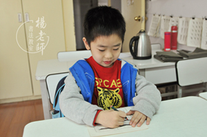 中午描紅課,小石頭磨蹭好久才坐下描紅,于是老師也拿出一張描紅,以比賽互進(jìn)的方式督促他:“你就慢慢磨吧,讓老師多描一點(diǎn)。”他聽(tīng)了趕緊專注地描,生怕自己不努力會(huì)落后。