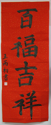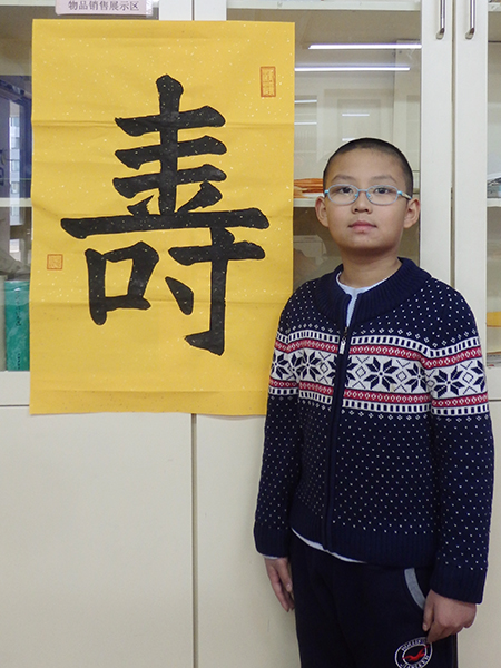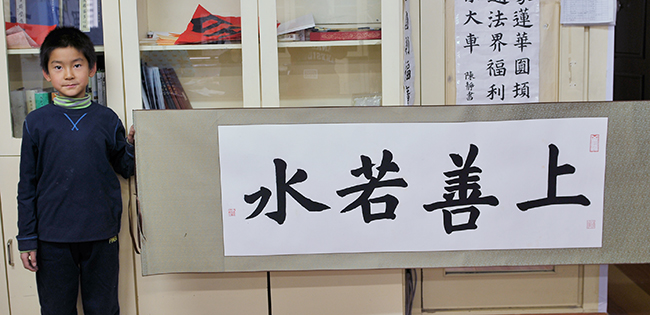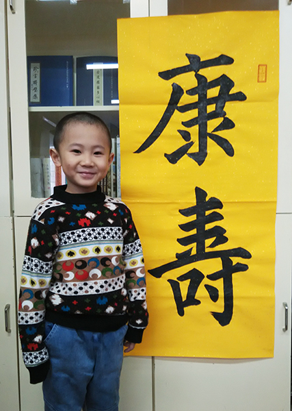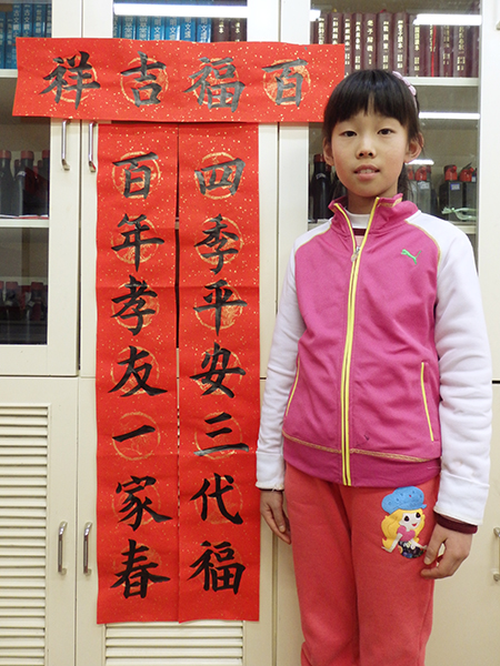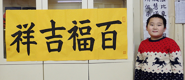 4. 充分利用寒暑假,因平時大部分孩子就一周一次課,平時在家又很少有時間練習,所以寒暑假集中學習能大幅度幫助孩子提升,同時也易于激發起孩子學習的激情。比如鄭凱元同學,石昊健同學,劉恬源同學正是利用今年寒假,集中時間來練習小字對聯的最好證明,他們不僅為自己寫,還寫了送親朋好友。另外楊一丁同學,暑期有參加過兩次夏令營,寒假今天越堅持不斷到書法教室上課,還記得他第一次夏令營期間絕大部分時間一直寫水寫布,很少用墨汁,因他會把墨汁弄得到處是,需要花很長時間來清理,用過的報紙總是凌亂的,來書法教室一年后有了大幅度的提升,現在報紙自己可以整理得很整齊,用墨汁也比較文雅了,而且還喜愛上了書法,今年寫了漂亮的大「福」字送給來北京看他的奶奶作為禮物。陳湘旭同學平時來上課的時間差不多兩周一次,但她每年暑假都會去通州學習,所以她的提升得益于此,其他如郭博文,邢萬里等一些學員也都又參加過暑期的夏令營,無論是書法還是個人自理能力,品德都有助益,此不足一而述了。